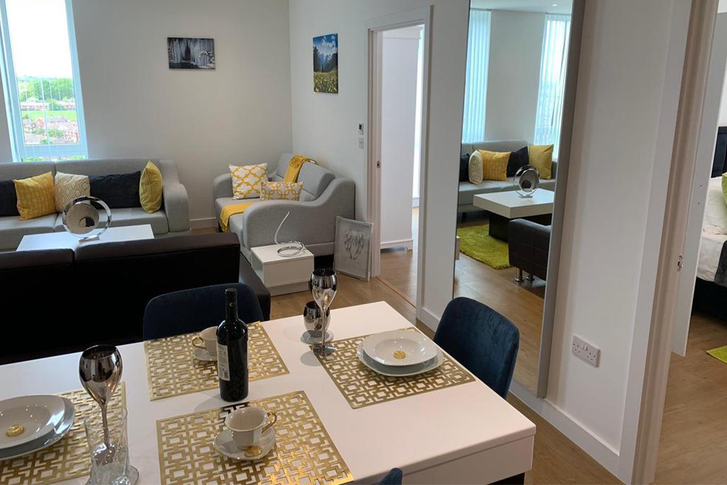 - Our superior two-bed business apartments sleep up to 4 people. An office desk and chair + fast 4G WIFI can be found in our business-friendly apartments. Each apartment has a comfortable super king-size bed, a king-size bed in the bedrooms. An extra bed can be added in the living area upon request. Each kitchen is fully equipped. These apartments feature a spacious living room and dining area plus a TV with Netflix so you can wind down after a productive day. Thoughtfully designed and with high specification finishes throughout, the stylish apartments at Royal Winchester House are warm and welcoming.
